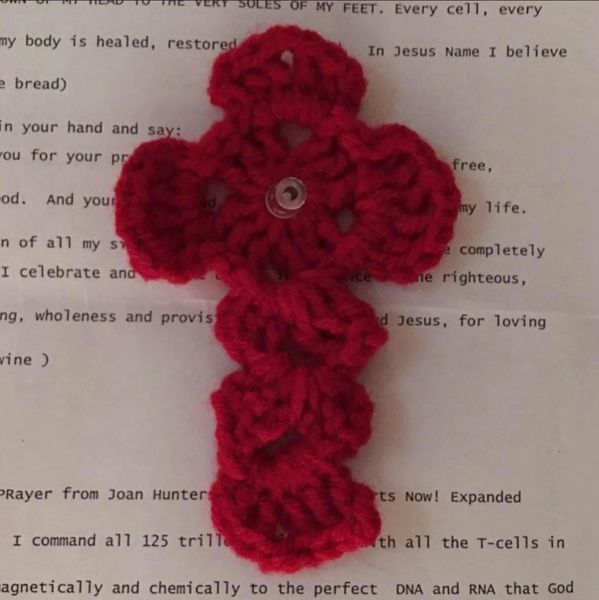 We would love to talk with you and send you a crocheted cross.(just tell us which color you would like) Just send us an email /call or text.
